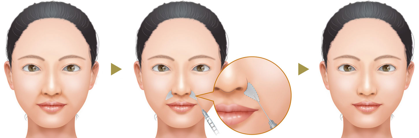 “贵族玻尿酸(鼻翼基部玻尿酸)”是通过向法令纹起始位置,即鼻翼基底(鼻翼根部)的凹陷处注入玻尿酸进行填补,使法令纹不再明显的治疗法。施术时间约10分钟,几乎无需恢复期。
